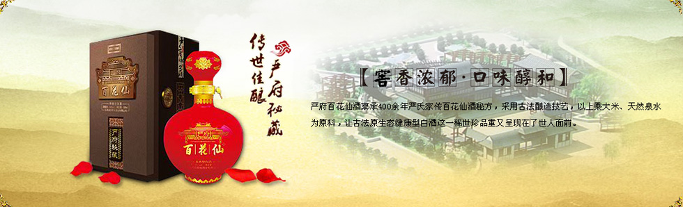 百花仙酒业有限公司为江西分宜介桥严氏后人所创建,以传承严府秘藏百花仙,为社会奉献健康好酒为宗旨。公司占地面积600余亩,其规模在江西白酒行业中名列前茅。公司出品的严府百花仙酒禀承400余年严氏家传百花仙酒秘方,采用古法酿造技艺,以上乘大米、天然泉水为原料,让古法原生态健康型白酒这一稀世珍品重又呈现在了世人面前。