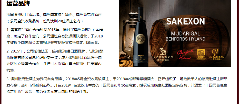 公司专注于品牌化运作,认真倾听市场的声音,把优秀的葡萄酒、白酒更好的推向国内市场,聚焦中高端葡萄酒、白酒品牌市场运营的先进管理理念,总部深圳为指挥作战中心,涉及传统渠道商、特殊渠道商、电商渠道、团购渠道商等多个销售渠道!