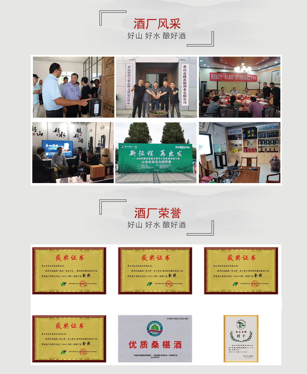 好山好水酿好酒,黄山市桃花源酒业有限公司坐落在古徽州腹地,黄山南麓的黟县。这里是新安江和青弋江的发源地,历来有徽商之源和桃花源里之称;这里人文荟萃徽文化历史厚重;这里的生态自然优越,枧溪大峡谷的源头水流入漳河穿黟城而过,一直以来孕育着勤劳智慧的古黟人民,盛产优良的粮食和水果给酿酒提供了丰富的物产资源。