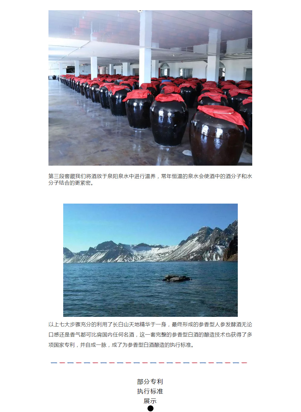 吉林森宝参花香集团,公司前身是“泉水酒坊”,有750年人参酒酿造历史,93年转型为股份制企业,2008年在泉水酒坊工作23年的丁政然先生收购泉水酒坊,正式成立参花香集团。将工厂迁至乾隆御笔长白山矿泉水水源地泉阳泉,成为一家能够生产人参发酵酒的企业。我们的人参酒也正式开启了专利保驾护航,使用泉阳泉矿泉水、长白山人参和东北粮食酿造人参发酵酒的标准模式。