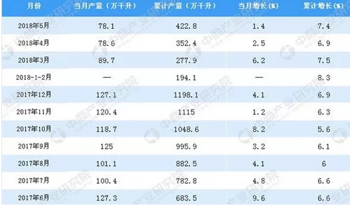 数据显示,2018年5月全国白酒产量为78.1万千升,同比增长1.4%。2018年1-5月全国白酒产量为422.8万千升,累计增长7.4%。